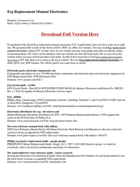 Pdf Download ecg replacement manual electronics Reader PDF